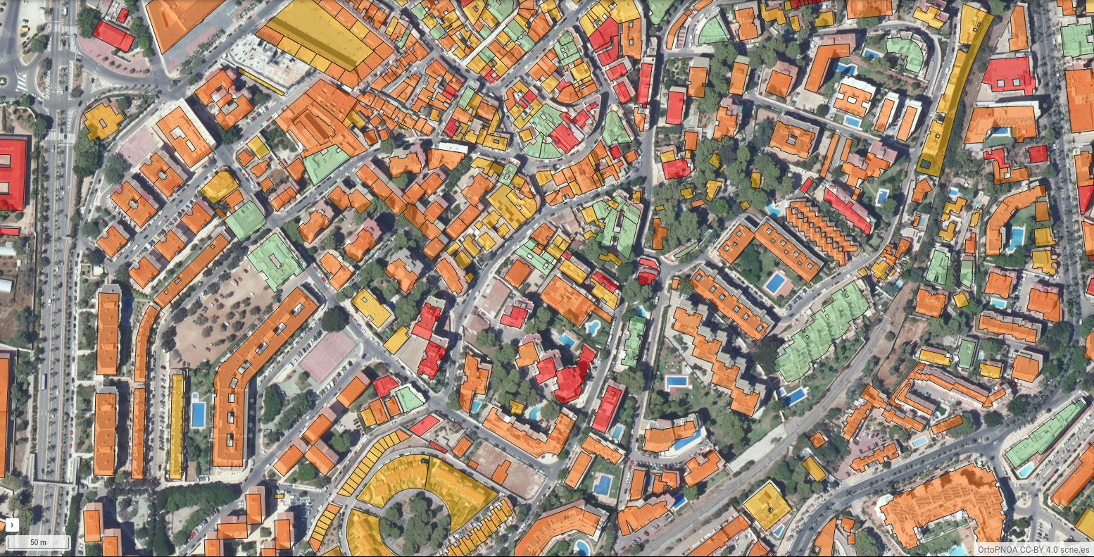 En general, los edificios que superan un valor de 40 en la clasificación preliminar, y que por lo tanto aparecen en rojo y clasificados como riesgo alto, son sólo aquellos en los que el proceso de teledetección basado en el análisis de fotografías aéreas o satelitales ha detectado la posiblidad de que haya amianto en su cubierta, o bien aquellos en los que en una posterior inspección visual se ha detectado una elevada probabilidad de presencia de ese o algún otro material con amianto. Aún así, la presencia de ese material no se dará por cierta hasta que se compruebe mediante una inspección, llegado el caso.
